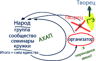 Таким образом, я служу всего лишь организатором процесса. У меня нет своего разумения, и не будет, пока я не вырасту вместе с ними. Ведь мы представляем собой единую систему, в которой я - Гальгальта вэ-Эйнаим (Г"Э), а они – АХАП. И потому мне не вырасти, не найти ответов без них. Все ответы – в народе. А я – организатор, переходное звено, и не более.