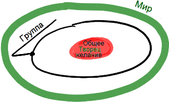 Ведь Творец находится в самой глубине, а Его сосудом является совместное желание: наши общие намерения, желание группы. А для того, чтобы тянуться к нему, нам нужно построить вокруг себя еще одну, более внешнюю оболочку, которой является весь мир.