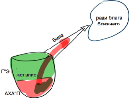 Не само желание (желудок, сердце) решает, использовать его или нет – а мое намерение. В этом намерении есть мое общее стремление к отдаче, а также желания ближних. Согласно этому я проверяю возможность наполнить это желание, то есть использовать его с целью наполнить ближнего.