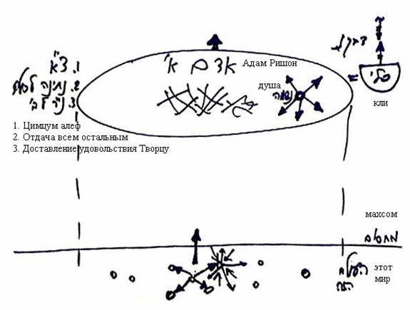 Корнем всех наших душ является общая душа, внутри которой мы все находимся в состоянии, называемом Адам Ришон (Первый человек). В этом состоянии все души связаны между собой, и ни одна не действует в своих собственных интересах – а только в интересах всего остального тела, и вся ее жизнь посвящена тому, чтобы отдавать, служить всему телу, ради такого существования этого тела, которое направлено на Творца.