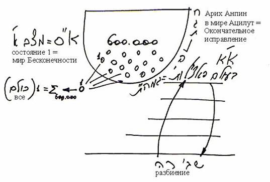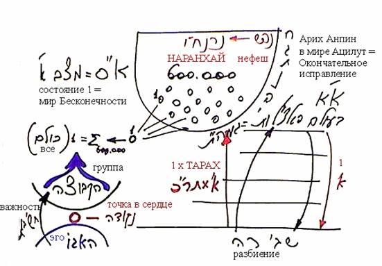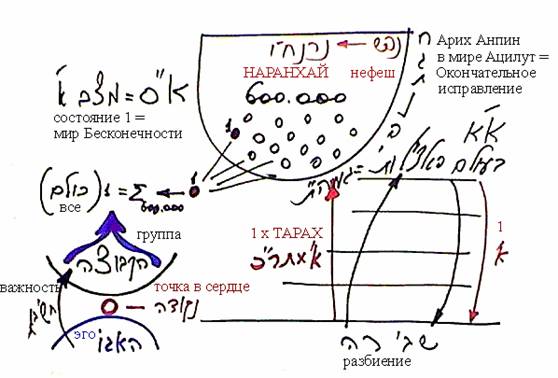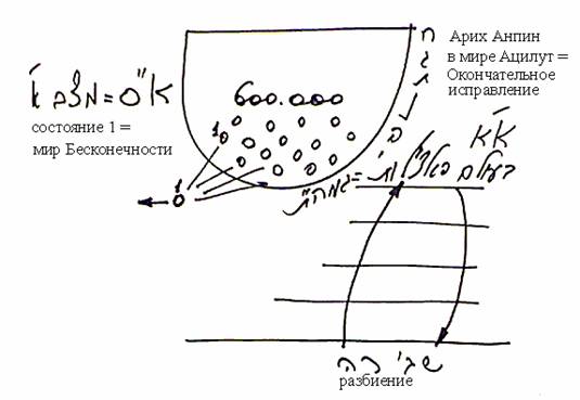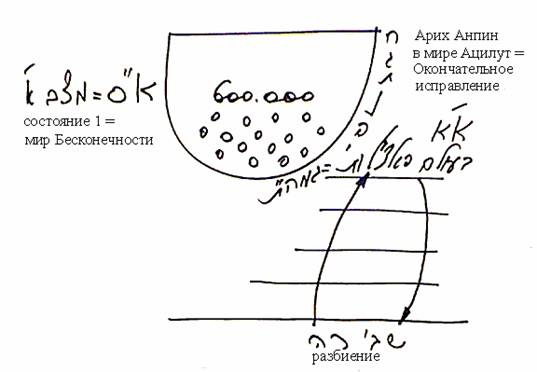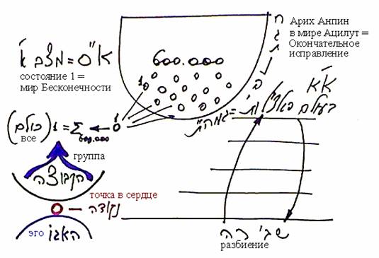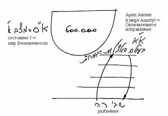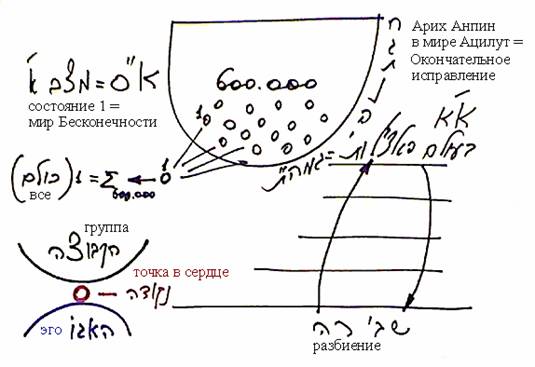 Я нахожусь в том же самом состоянии Бесконечности. Нет ничего, кроме него. Состояние Бесконечности – это первое состояние (алеф). В нем находится кли, состоящее из 600.000 частей. Можно сказать, что это шесть миллиардов людей, - неважно, на сколько частей разделить его. Все эти части связаны вместе в одно кли. Все они представляют собой, в конечном итоге, свойства – 600.000 свойств. Почему именно 600.000? – Если мы начнем считать согласно силе ступеней в мире Ацилут, то придем к 60-ти «рибо» (рибо – это 10.000).