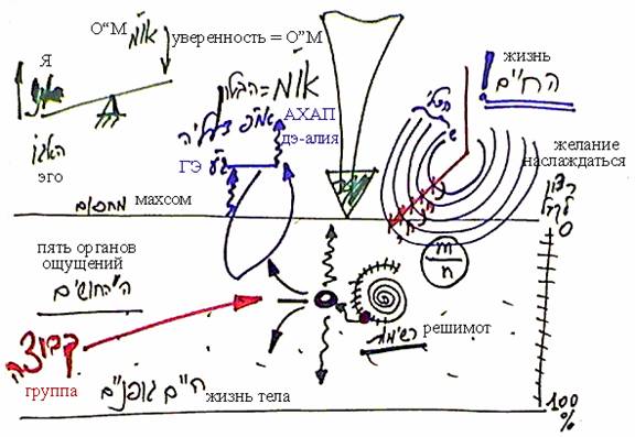 Известно, что каждое решимо представляет собой решимо дэ-итлабшут и решимо дэ-авиют. Но это всего лишь решимо - воспоминание о свете. А его реализация, ощущение в нем себя зависят от того, на каком уровне человек находится вместе с решимо, зависит от интенсивности, от силы нисходящего света.