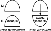 Как мы уже знаем (глава «С кем вы напарники?») соединение (зивуг) между мужской и женской частями – не забывайте, что это всего лишь определения, – происходит в два этапа: зивуг дэ-нешиким и зивуг дэ-есодот.