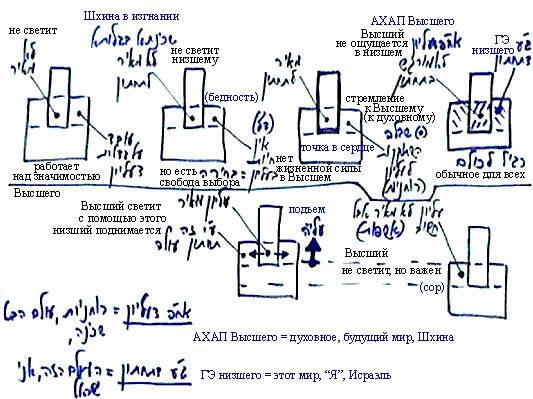 Таким образом можно обрисовать все рассмотренные выше состояния. Нет ничего иного, кроме взаимодействия Гальгальты Эйнаим низшего и АХАП Высшего.