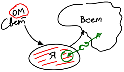 Высший свет (ОМ, ор макиф) светит на меня, на мой эгоизм, вызывает во мне свойство отдачи.