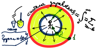 Интегральная система (желтый цвет на рисунке), в которой все связано вместе, в том числе и все человечество, построена на свойстве отдачи – вопреки нашему миру, который создан силой получения. Поэтому я ее не ощущаю.