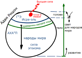 Все остальные зависят от части "Исраэль", поскольку в ней есть особое свойство – "точка в сердце", часть божественного свыше, дополнительная сила, кроме обычного эгоизма, свойственного всем творениям.