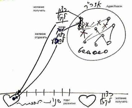 Желание отдавать – это то, что раньше было экраном, это правая линия. А растущее желание получать – это левая линия. Мы должны выстроить свое усилие, соединив обе линии, создав экран на все желания. И это является средней линией, которая называется адам, человек.
