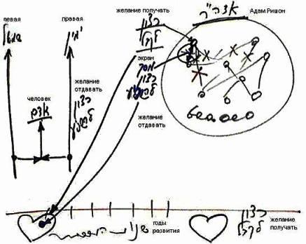 Но всё, что пробуждается кроме этого клея, кроме точек в сердце - это пробуждаются наши эгоистические желания. Можно нарисовать структуру Первого Человека, где находятся все души и все они связаны друг с другом.