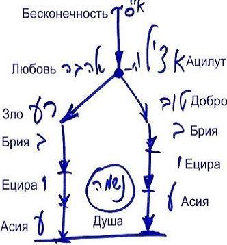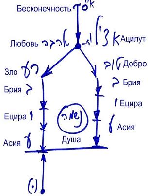 В мире Ацилут царит любовь, и управление едино. Творец проявляется как Добрый и Творящий добро плохим и хорошим. А ниже мира Ацилут управление делится надвое: возникают системы чистых и нечистых миров БЕА, меж которыми находится человек, душа. Тогда, в мере своей исправленности и способности объединить как хорошие, так и плохие ощущения, он постигает управление Творца.