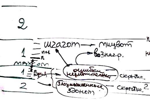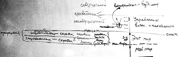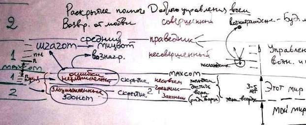 Вообще-то, средним мы называем находящегося между двумя состояниями. Но, вообще, несовершенный праведник называется "средний", потому что он уже начинает из этого состояния ощущать следующее – возвращение из любви. Я просто так нарисовал его посреди между этими двумя управлениями – средний, потому что он из постижения управления вознаграждением и наказанием уже начинает постепенно ощущать, что на самом деле Управление – абсолютно.