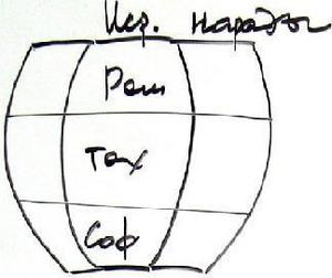 Келим ХаБа"Д, ХаГа"Т, НеХ"И кроме того, что делятся сверху вниз, делятся еще на внутреннюю и внешнюю части. Посмотрим, чем они отличаются друг от друга. Вних есть 10 сфирот, это рош, тох и соф.