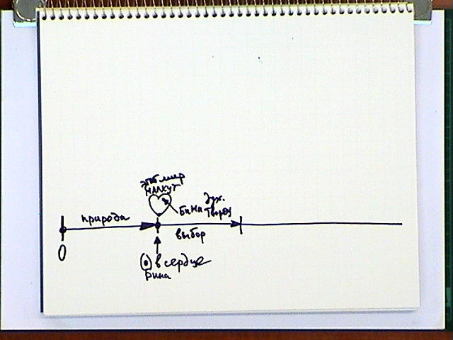 То есть Творец приводит человека к хорошему выбору (якобы, выбору) и говорит: "Вот это ты должен взять". Видимо существует какой-то вход в будущее, к которому Творец приводит человека. Во всех остальных событиях, которые происходят с человеком (хотя считается, что человек в них участвует сознательно), он действует автоматически, при беспрекословном подчинении, по указу природы или Творца, что одно и то же.