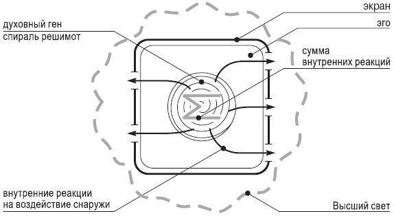 Если мы ставим над этими стенками экран ( масах), то уподобляем наши внутренние свойства свойствам внешнего света. И тогда мы достигаем той реальности, которая не давит на нас и разрешает все наши противоречия. Свет воспринимается нами как наслаждение, мудрость, знания, постижение.