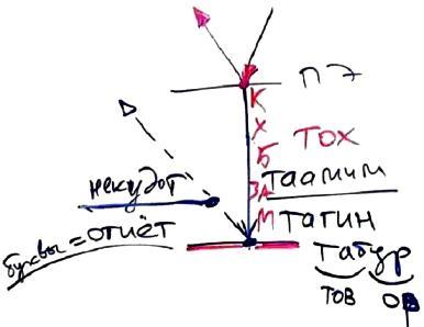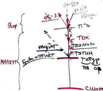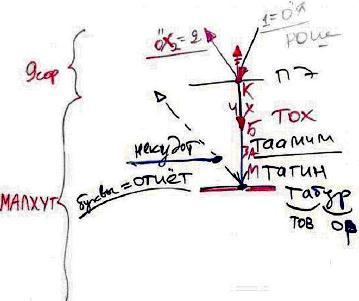 Еще можно сказать, что табур состоит из тех же слов, что слова "тов" и "ор" – табур. (тов – это хорошо, ор - это свет) Это указывает на то, что свет – хорош, когда он находится в сосудах, пригодных для его получения. Итак, мы выяснили, что такое десять сфирот де-тох до табур.