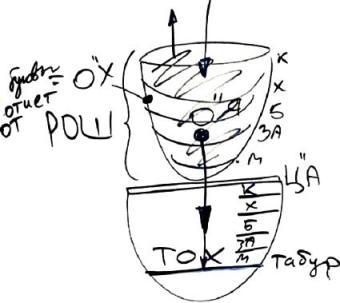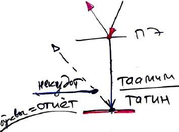 Табур - от слова табура, центр. Это, как бы, самая центральная точка. Почему мы рисуем табур в таком виде – мы хотим этим подчеркнуть, что эта точка является, в общем-то, основной в формировании будущего, настоящего кли, ведь поскольку она останавливает свет и не пускает его дальше, возникает здесь потом "битуш пним у-макиф" (столкновение между внутренним светом и наружным светом). Все это затем приводит к тому, что из табур, благодаря этому воздействию – отражению, возникают настоящие келим, настоящие желания. Все настоящие, истинные желания, устремления, - они возникают только в результате отдачи – отпора, удара.