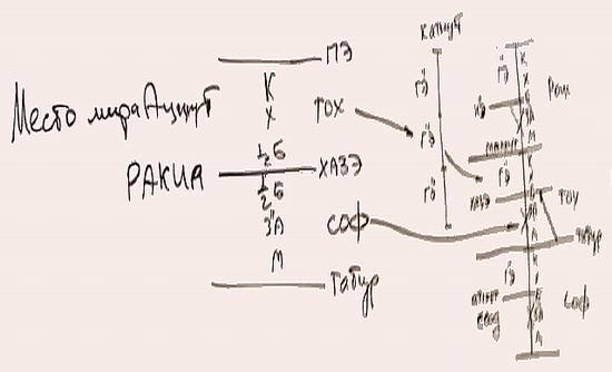 И получается маленький парцуф, в катнут: в рош - ГЭ, от пэ вниз и до хазе – тох ГЭ, и внизу – соф, на который, вообще, не делается никакого расчета.