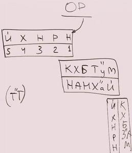 14. В книге Зоар, в некоторых местах написано, что в результате подъема малхут в бину, пять букв имени Элоким – две буквы остались на той же ступени, а три буквы опустились на нижестоящую ступень.