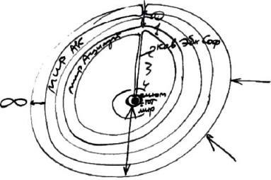 Что хочет сказать Бааль Сулам? Как наше тело и душа в нем образовались нисхождением света и кли сверху вниз, так же и управление Творца нами, в центре этой окружности находящимися, происходит постепенным нисхождением от Его Замысла к нам путей, сил управления сверху вниз.