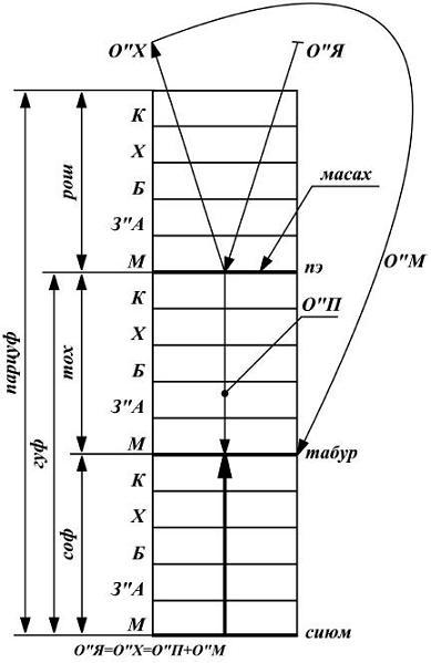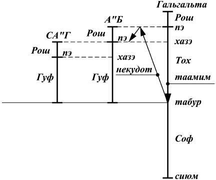 Граница, разделяющая тох и соф, называется табур – пуп, а тох и соф вместе образуют гуф – тело.