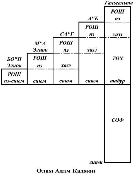 Эта серия из пяти парцуфим, возникших в результате приема пяти порций света, называется олам Адам Кадмон (А"К).