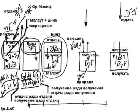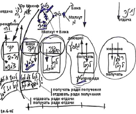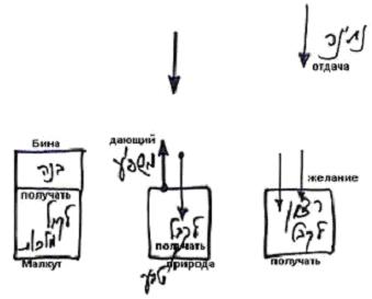 Мы должны над желанием получать надстроить некую систему, некое желание, которое было бы отдающим. Бина – это отдача. Необходимо, чтобы это желание смешалось с получением и дало бы получению возможность построить – чтобы малхут сама построила намерение отдавать.