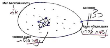 Мы включены в общее желание, внутри которого все отдельные желания связаны между собой, как в теле связаны между собой все клетки и органы. Это то, что создано Творцом. А затем было произведено скрытие. То есть каждый почувствовал, что отключен от остальных. Сама система существует. Когда она полностью исправлена, она называется Бесконечностью. Та же система относительно ее самой, относительно душ... Общее желание – это общая душа, душа Адама Ришон. А каждый в ней – это отдельная душа.