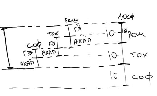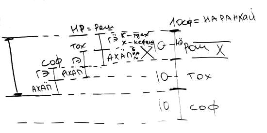 И теперь все парцуфим, которые будут здесь, будут построены только по такому принципу. Есть десять сфирот в Рош, десять сфирот в Тох и десять сфирот в Соф, но в итоге я работаю только с половиной: половина Рош – Г"Э, АХАП находится внизу, я с ними не работаю; затем Тох – Г"Э, АХАП под ней; и Соф начинается с Г"Э, а АХАПа дэ-Соф вообще нет.