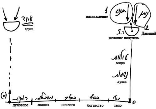 Весь этот процесс, который проходит человек при спуске сверху вниз, по мере которого были созданы миры, затем души, - это спуск в реальность этого мира. В этом мире мы проходим определенное развитие в своем желании насладиться, которое постоянно растет от стремления к телесным наслаждениям к жажде денег, почестей, знаний.