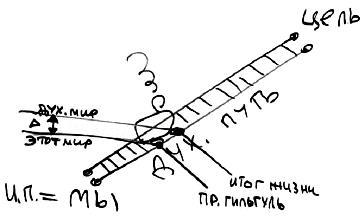 Мы идем, как по рельсам, от одной нашей точки, где мы сегодня, к нашей Цели, – как бы двое рельс, и мы идем или едем на поезде. Этот поезд – это наш духовный путь, и пройти от одной остановки к другой по этому пути мы можем, если только выйдем в ощущения духовного мира, поднимемся из ощущения этого мира в духовный мир. Вот этот перепад, эта дельта, которую мы сможем преодолеть в течение своей жизни, и называется тот путь, который мы пройдем по этим шпалам, по лестнице подъема из нашего мира в Высший мир. Из начального нашего состояния – это исходное положение, в конечное, а это Цель.