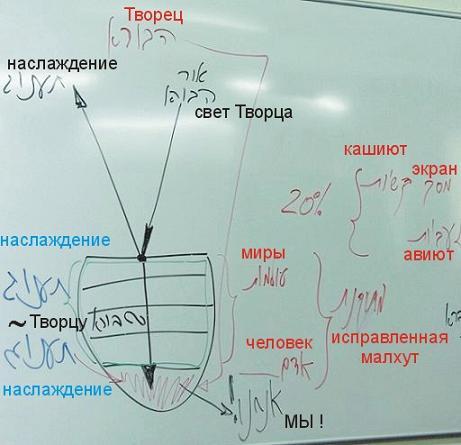 ...Кли в целом, малхут мира бесконечности, расположено от экрана и до места, называемого сиюм (окончание). Это вся бхина далет – всё желание получить, созданное Творцом. Вначале это желание в состоянии наполниться, к примеру, на 20% от своего объёма – и оно наполняется. Что же дальше? Если малхут останется наполненной на эти 20%, то, как мы уже говорили, наслаждение, наполняющее хисарон (недостаток, потребность), покрывает, как будто бы стирает недостаток, в результате чего он исчезает, поскольку получил желаемое. Оставаться в таком состоянии равноценно бездействию.