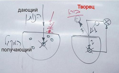 Таким образом, мы видим две пары: дающий – получающий и снова дающий – получающий. В первом случае дающий – Творец, получающий – творение, во втором случае и дающий и получающий – творение.