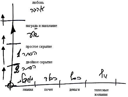 Можно много говорить об ощущениях в двойном и простом скрытиях, сравнивать одно с другим, прослеживать, как все это развивается, переходить к ступеням «вознаграждения и наказания» и «любви». Есть также примеры этих состояний в «Микра» и в «Гмара».