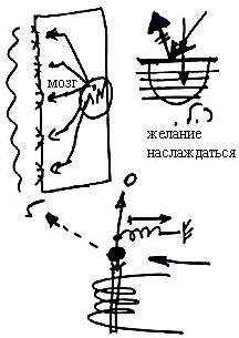 Перед этими пятью входами словно стоят экраны. Снаружи ничего не входит вовнутрь, просто внешние воздействия давят на нас, и в соотношении находящегося снаружи и существующего внутри мы определяем, что снаружи что-то существует, и это дает нам затем картину состояния в нашем мозгу. Мы никогда не выходим и не можем выйти вовне. Мы воспринимаем все внутри себя. Так кли, желание наслаждаться построено изначально – и в материальном, и в духовном.
