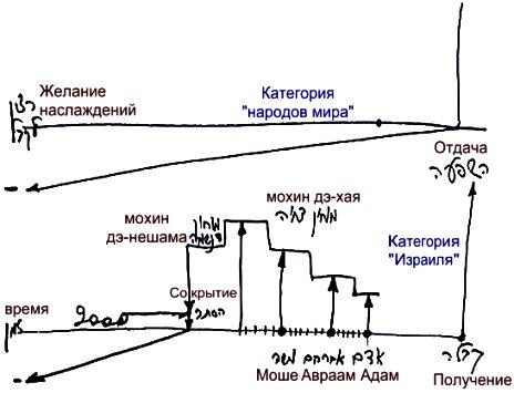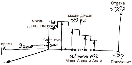 Вот одна из возможных диаграмм развития сосудов отдачи. Так шел процесс на протяжении 2000 лет последнего изгнания. Кроме того, нужно еще отобразить, как сосуды отдачи перемешиваются с сосудами получения.