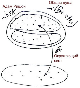Речь идет о таких мудрецах-каббалистах, как Адам, Авраам, Моше и о многих других, кто жил в тех поколениях вплоть до начала тяжелейшего падения, связанного с разрушением Храма. Тогда целые массы находились на духовных ступенях, и мудрецы Талмуда обладали наибольшим авиютом из всех поколений. Они были последними. Так вот, все они своим исправлением в системе Адам Ришон произвели общее исправление для нас. Мы – это те, кто находится на материальной ступени в материальных желаниях (на чертеже нас можно обозначить внизу или же внутри общей системы). И они оставили нам возможность связи с собой, достигаемой благодаря изучению тех же действий и текстов, когда мы стремимся к этому и ставим себе целью достичь тех же состояний, что и они. Как следствие, нам светит окружающий свет.