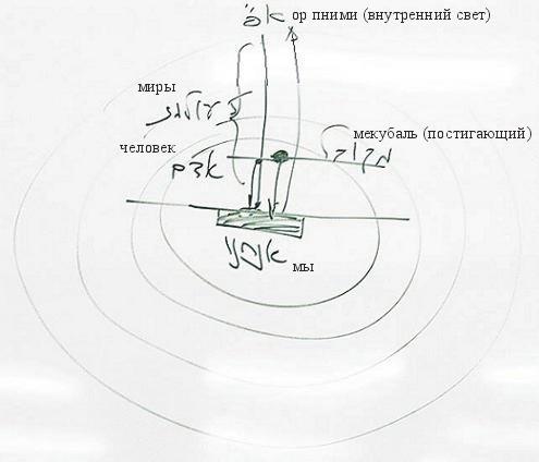На рис.1 в центре изображены мы сами, а вокруг нас – все высшие миры. Необходимо, прежде всего узнать, каким образом в самом начале сотворения было из «ничего» («еш ме-аин») создано творение, начиная от распространения четырех стадий прямого света, и как затем развернулись все миры вплоть до нашего мира, все пять миров.