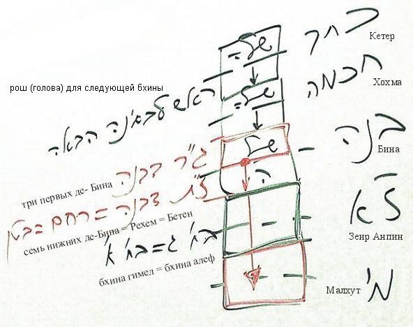 Вторая стадия создает четвертую через третью, которая является желанием получать, равнозначным такому же желанию в первой стадии. Однако бхина гимель «толще», «грубее» бхины алеф, потому что ее желание исходит уже из бины, из творения.