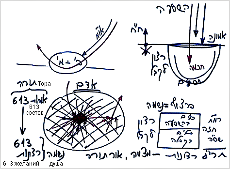 И это является всей сутью Торы. У меня есть 613 желаний, и я должен притянуть к ним 613 светов. Все эти 613 светов называются Тора – света, исправляющие желания. А 613 желаний называются душа. Получается, что для исправления души нам необходима Тора. Мы должны привыкнуть к этим понятиям, чтобы не запутаться в том, что будем читать далее.