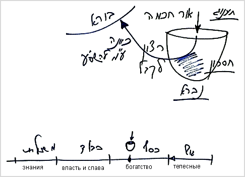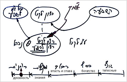 Ему вроде бы необходимо привести в порядок свои взаимоотношения с тем, что находится в этом мире, поскольку на него вроде бы влияют другие люди, приводящие в действие какие-то силы своими мыслями, желаниями, а он воздействует на них. Он начинает думать, что здесь, в плоскости этого мира, существует духовное, и здесь он должен достичь отдачи и т.д. Это отвлекает человека до такой степени, что он оставляет учебу. Некоторые начинают развивать собственные теории, а другие просто прекращают всякую связь с наукой Каббала.