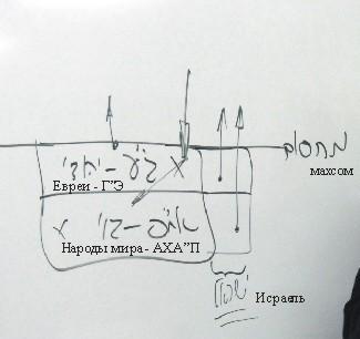 Существует общая душа (рис. 2): ГЭ – евреи и АХАП – гои. И хотим мы того или нет, но ГЭ исправляется... Изначально всё разбито, всё находится под властью разбиения, под махсомом. Но келим ГЭ обязаны подняться и исправиться первыми. Среди разбившихся келим есть чистый ГЭ и чистый АХАП, ГЭ внутри АХАП и АХАП внутри ГЭ – существуют всевозможные состояния. И как бы там ни было, еврей (по матери, я говорю сейчас именно об этом), занимающийся Торой, подотчетен согласно тому, что он делает со светом, который притягивает к себе.