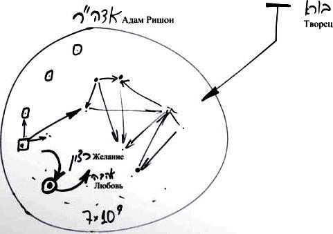 Далее, чтобы достичь соответствия Творцу, нужно предоставить этой системе возможность выстроить саму себя в том же виде, в каком ее создал Творец. Адам Ришон – это совокупность всех душ. Скажем, его составляют семь миллиардов (7x109) душ в общей сложности. Сформировав себя, система эта уподобится по свойствам уровню Творца.