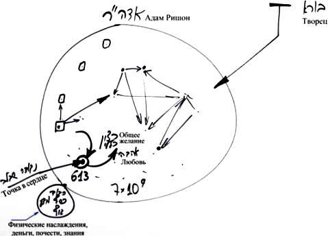 Раньше я чувствовал себя внизу и думал, что мне хочется только физических наслаждений, денег, почестей и знаний, и не более. Вот, что ощущалось через пять органов чувств в моем маленьком желании. Но внезапно я начинаю раскрывать нечто вне себя, исходя из точки в сердце. Приступая к работе по отношению к ней, я обнаруживаю, что моя точка – это душа, часть большой системы Адам Ришон. Тогда я начинаю обретать всю эту систему, причем то, что я ощущаю, и есть духовный мир.
