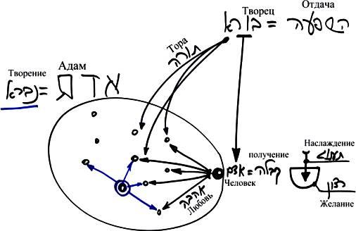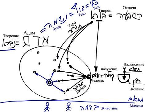 А потому Творец сокрыт и не показывает человеку, насколько бесконечно, полно и совершенно свойство отдачи. Вместо этого Он предоставил человеку возможность достигнуть отдачи без поддержания связи с Собой. Человека окружает множество таких же душ, или желаний, или людей, которые, в общей сложности, составляют всё человечество. В целом, человечество тоже называется «Адам» («человек») и представляет собою общее кли. В мере своей способности включиться в это кли и совершать отдачу ему, проявляя тем самым свое желание быть как Творец, – в своей связи с другими человек и получает наполнение.