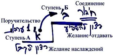 То же касается и поручительства. Я еще не достиг соединения на уровне ступени Б, однако мне уже сейчас нужна эта сила, иначе я туда не поднимусь. На ступени Б находится сила соединения меж нами, а внизу, на ступени А я лишен этого соединения. В таком случае, как же мне подняться? Ведь именно сила соединения помогает мне отключиться от своего желания наслаждаться и перейти к желанию отдавать. Одно из двух: или у меня есть эта сила, или ее нет.