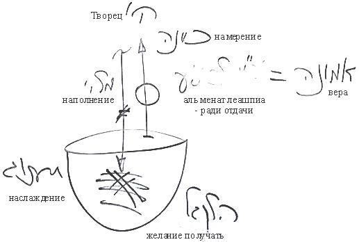И тогда наполнение и наслаждение не будут тушить друг друга. Новое намерение поддерживает наполнение в его полноте и вечности внутри сосуда; можно наслаждаться, наслаждение не прекращается, его можно постоянно расширять, поднимаясь всё выше и выше.