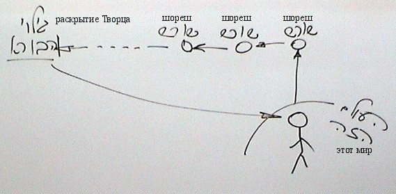 Один корень ведет его к другому корню, который ведет его к следующему корню, приводя таким образом к Творцу, к открытию Творца. А кому открывается Творец? Тому, кто интересуется этим и находится в этом мире. Но где он находится? Своим постижением он находится в Высшем мире, а тело его находится в этом мире.