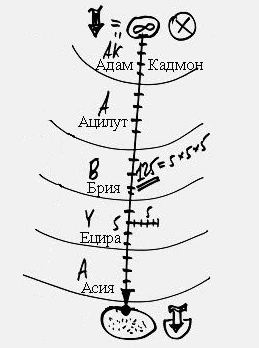 Он хочет создать скрытие по отношению к творениям для того, чтобы раскрыть совершенство. Программа творения заключается в том, что от совершенного, от Творца, от мира Бесконечности келим опускаются до несовершенного состояния за счет сокрытий. То есть существует очень большой источник света, а затем на него происходят сокрытия – возникают миры («олам» - мир, «аалама» - сокрытие). Всего есть пять миров: Адам Кадмон, Ацилут, Брия, Ецира и Асия.