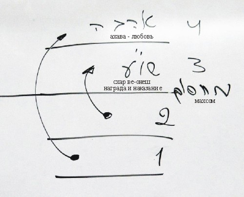 Он пишет, что нет поблажек для усилия, так как только то, что ты готовишь для своего устремления вверх, когда не идешь в той же плоскости, как все, а готовишь для поднятия вверх дополнительную силу, только таким образом ты сможешь достигнуть Цели. Цель находится все время тут (см. Рис. 3), а ты идешь тут - ниже, когда цель - над тобой.