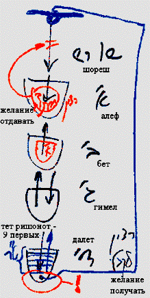 Скажем, 15 воплощений назад я уже был здесь и было у меня желание получать, и желание дать. Это - мое животное желание получать, а это - та величина, на которую я вырастил его с помощью желания отдавать, с помощью свойства Бины, что во мне.